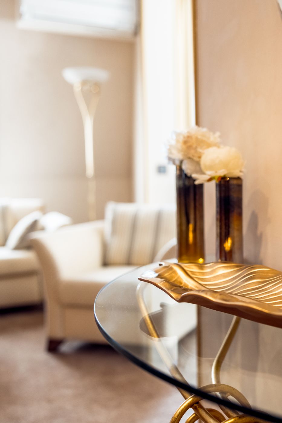 In unserem Haupthaus und im Nebengebäude befinden sich exklusive Zimmer und Suiten, die mit ihren erdigen Farben Ruhe und Gemütlichkeit ausstrahlen. Moderne Bäder laden zu kleinen, privaten Wellnessmomenten ein.