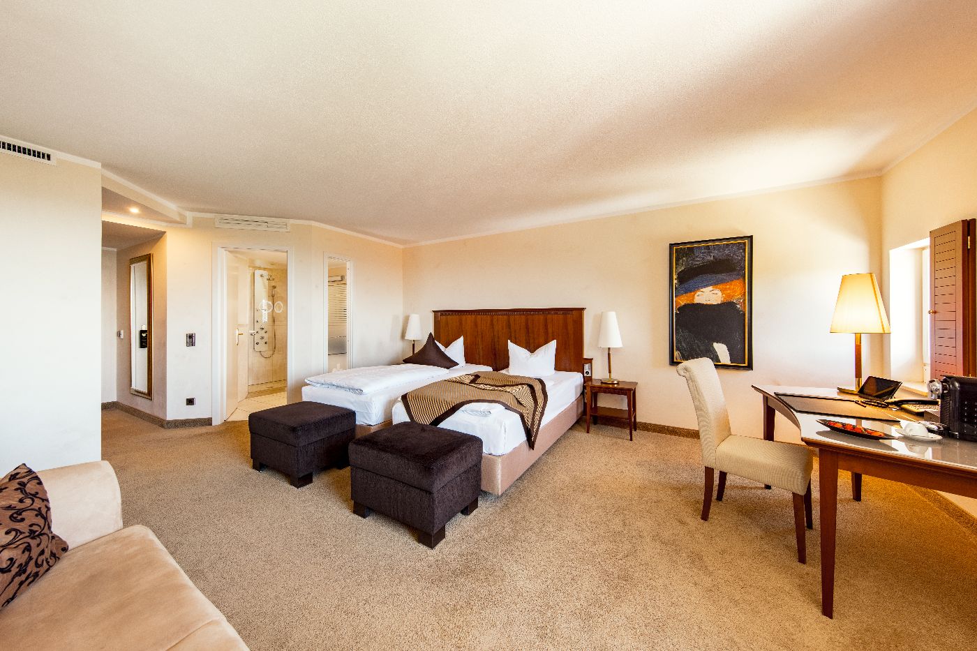 Hier können Sie sich ausbreiten, ganz nach Lust und Laune. Unser Deluxe Zimmer bietet reichlich Platz: zu zweit oder als Familie. Das großzügige Sofa lässt sich ruckzuck in zwei zusätzliche Möglichkeiten zum Träumen verwandeln. Der Blick über das Filstal ist einzigartig. Auch in diesem Zimmer verwöhnen wir Sie mit Dusche oder Badewanne.